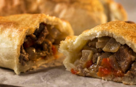 Ingredientes: Para el relleno: 400g de aguja 700g de cebolla picada 1 morrón picado 1 chile verde picado 4 dientes de ajo picado 2 cdas de comino molido Para la masa: 500g harina 200cc agua 1 cda sal 80g grasa vacuna fundida Preparación: Para el relleno, picar a cuchillo la carne, en trozos lo más […]